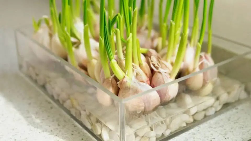 La belleza de cultivar ajo en agua es que proporcion